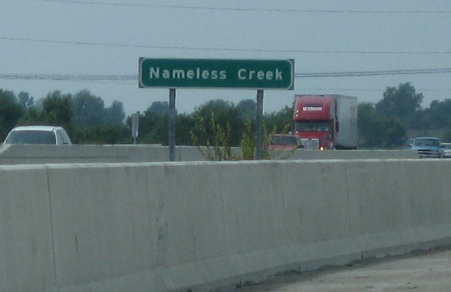 About 30 miles east of Indianapolis I-70 crosses the Nameless Creek.