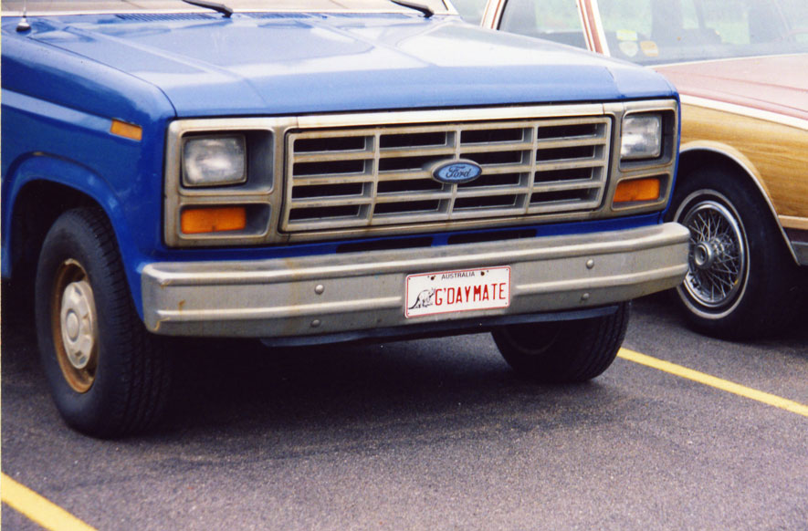 Some student at Rose-Hulman has a pickup with an Australian license plate on it. Too bad the rear plate says it's from Michigan.