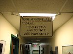 A sign inside the MBTA's Cobble Hill dispatcher's office.