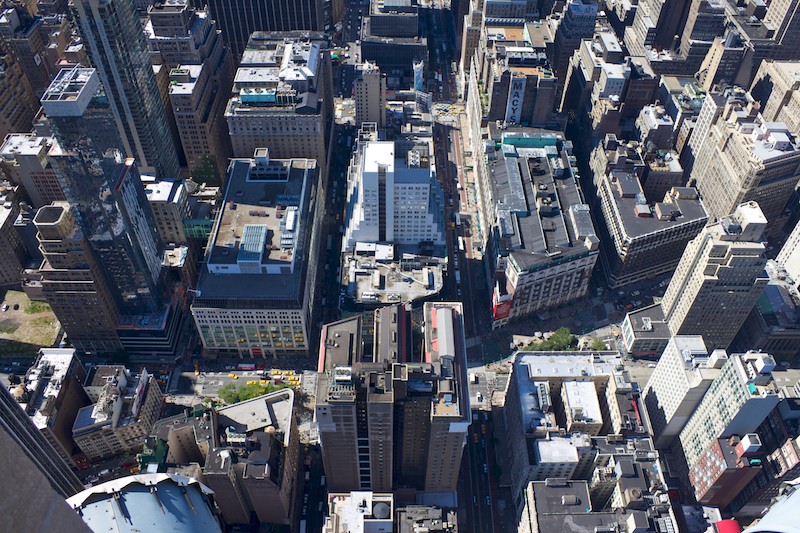 Looking down on the intersection of Broadway and 6th Ave. Or, at least I would be if there wasn't a building in the way. (September 14, 2010)